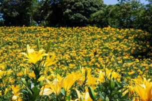 見渡す限り黄色のゆり畑♪. . 一色でまとまって これだけのスケールだと はぁっとため息が出る . すごいわよねぇ . ついつい見入っちゃう🤗 .
