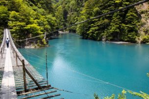 エメラルドグリーンがとってもキレイ. . 天気に恵まれれば 吊橋から見える湖は キレイなエメラルドグリーン♪ . 雨が降ったあとだと 注意が必要だけどね🤗 . マスク持参で 初夏の寸又峡を楽しもう! .