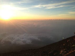富士登山ログ. . 雲海から太陽がひょっこりはん いっきに体があったまる瞬間♪ . 太陽の光は偉大ね .