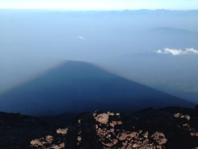 富士登山ログ. . ご来光をみてから、 早い時間に西側にまわれば ほらっ!🤗 . 影富士 ビュースポットに立つと 自分の影が流れているのがわかるのが 隠れたオススメっ .