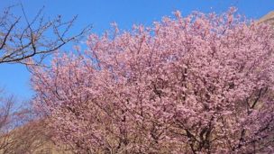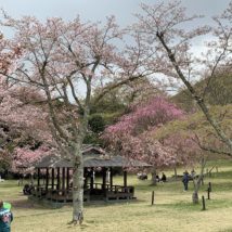 伊東桜の里から. . 曇り空が残念だったけど 一面桜で感動 . 風が強く、 桜吹雪もすごかった . 広々として いい場所ね .