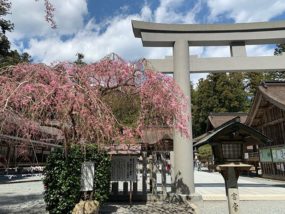 小國神社の桜. . 参拝時よりも 駐車場近辺の方がキレイかも . 開運小槌を買いながら 桜のお花見もいいわねっ .