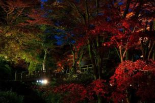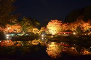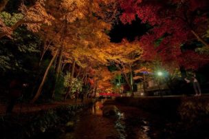 小國神社の紅葉ライトアップ . 川沿いが奥まで 紅葉がキレイだからみてみてね . 写真は赤い橋の付近♪ みんなが写真撮る場所ね♪ . 今の紅葉状況じゃないから気をつけてね .