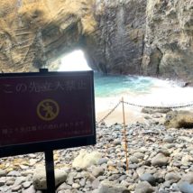伊豆の竜宮窟 途中から立ち入り禁止になってた! 前は水際まで いけたのになーーーっ 落石注意ってかいてあるから なんかあったのかしら?