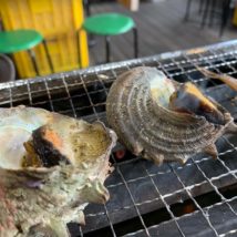 沼津港水族館のすぐちかく 「海女小屋BBQ」で 美味しい海産物を目の前で♪ さざえのわたが こんなに美味しいなんて! びっくりっ 焼き方がわからないと 店員さんが丁寧に おしえてくれるのーーっ