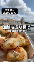 人気のサービスエリア 新東名上り、駿河湾沼津SA。 お食事の種類が豊富にあるけど、 ちょっと立ち寄って食べたいのならこれ! 入り口付近外に面している「海鮮はんぺん専門店」 ここのはんぺんがめっちゃ美味しいんだけど とくに「海鮮ちぎり揚げ」がめちゃうまい! 立ち寄ったらぜひ食べてみて!