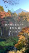 白糸の滝は見下ろしても 滝の間近でみても、秋はカラフルでキレイだよ 冠雪の富士山もいと美し!