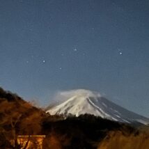 夜の富士山を河口湖から