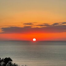 雲見オートキャンプ場からみた夕日。 こんなにキレイに、水平線に降りるの初めてみたー!
